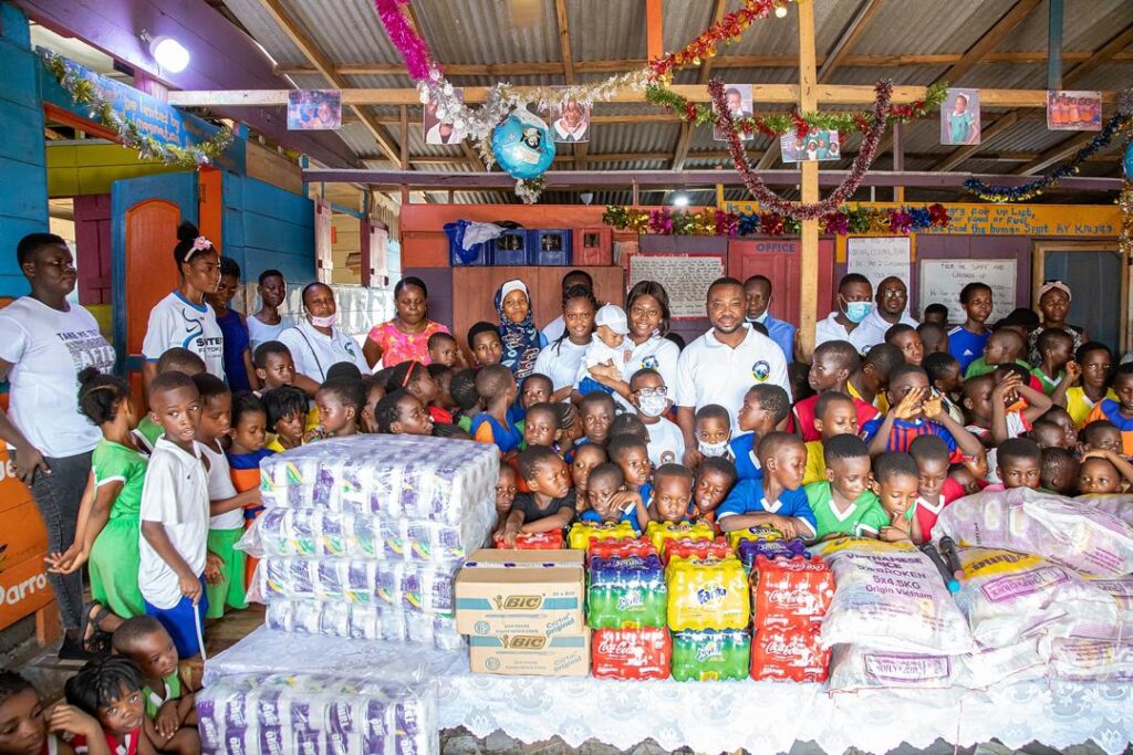 Items donated to the organization which amounted to Gh₵13,000 included Bags of rice, assorted drinks, exercise books, pens, pencils, sharpeners, erasers, toiletries, and gallons of liquid soap.